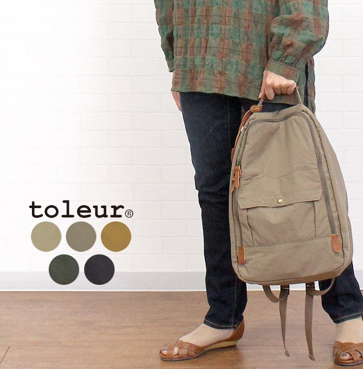 トーラ toleur 11337 バッグ リュック バックパック かばん 鞄 軽量 軽い A4サイズ対応 レディース 春 夏 秋 冬 ナイロン カウレザー 牛革 プレゼント 実用的 ギフト 母の日 大人 通勤 通学 大容量 シンプル デイバック 黒 カーキ マスタード ベージュ グレーベージュ 40代 50代 60代