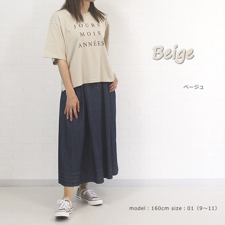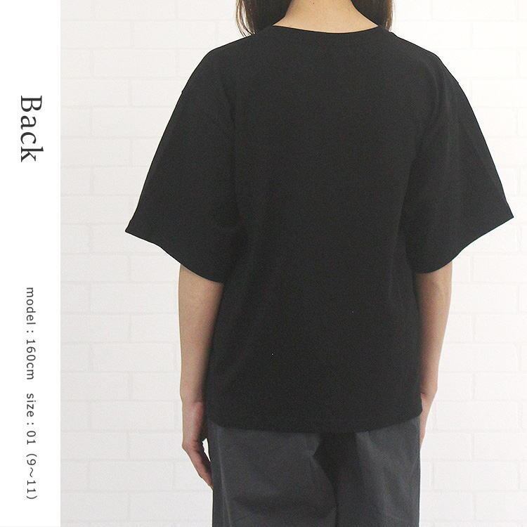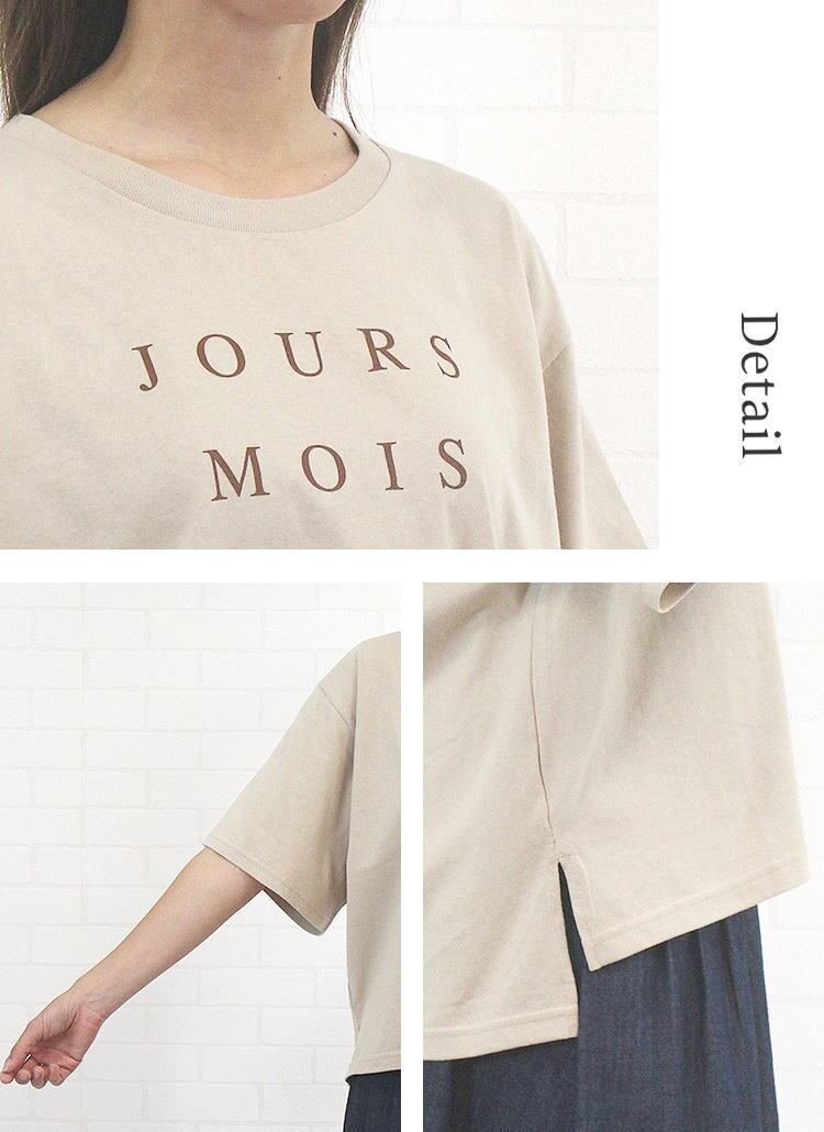 42611631 トップス カットソー プルオーバー 5分袖 クルーネック ゆったり ロゴプリント 綿 コットン100% 通販 店舗 レディース 女性 清楚 可愛い シンプル 洗濯可 01 9号 11号 M 40代 50代 60代
