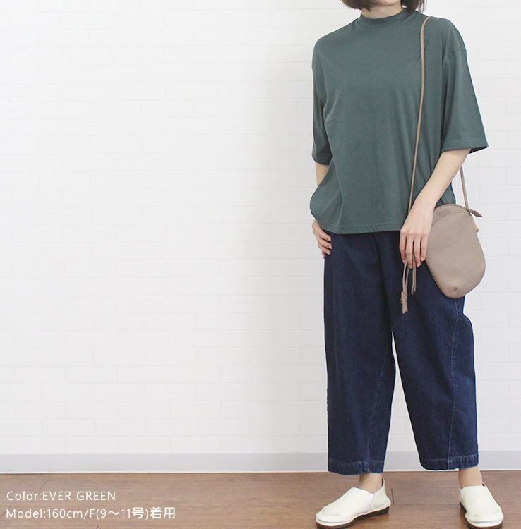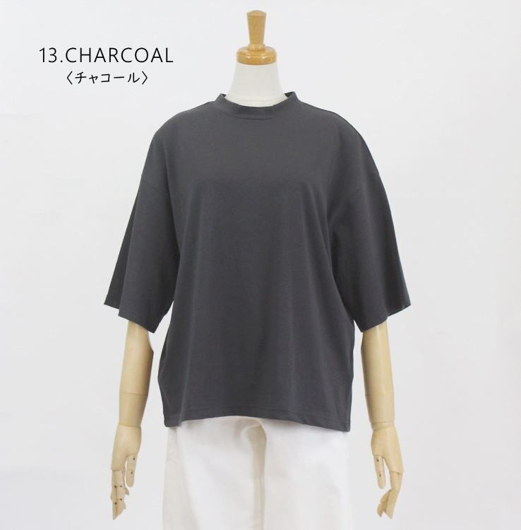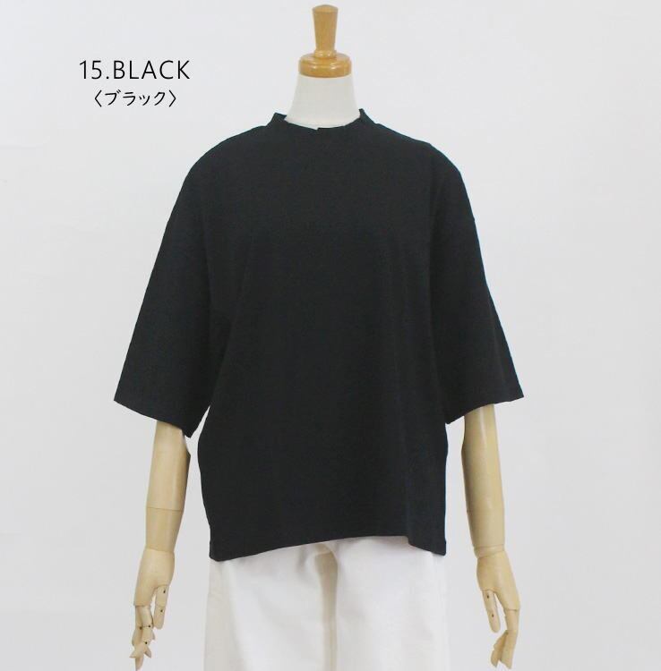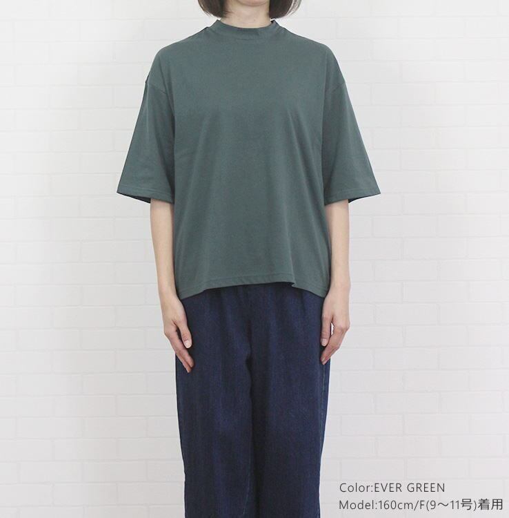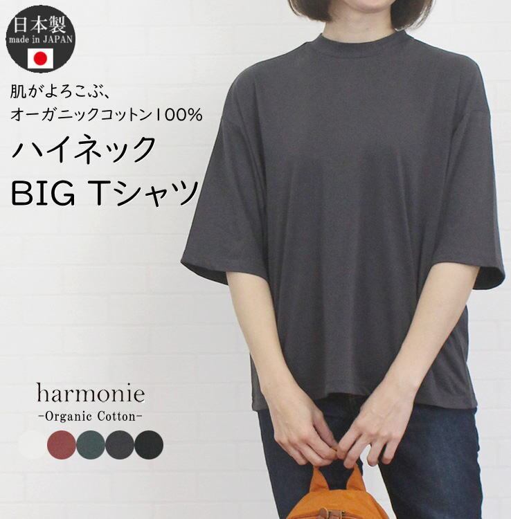 アルモニ harmonie 82340670 トップス カットソー プルオーバー ハイネック Tシャツ 5分袖 半袖 綿100% レディース 女性 春 夏 ハルモニー オーガニックコットン 日本製 上質 通販 店舗 ゆったり 体型カバー 40代 50代 60代