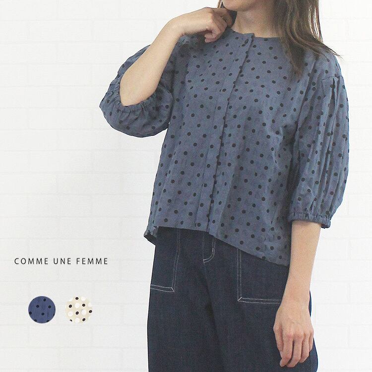 私が私にときめくブラウス ドット柄ブラウス 塩縮加工 凹凸 さらり 清涼感 セットアップ対応 コムアンファム comme une femme 40代 50代 60代